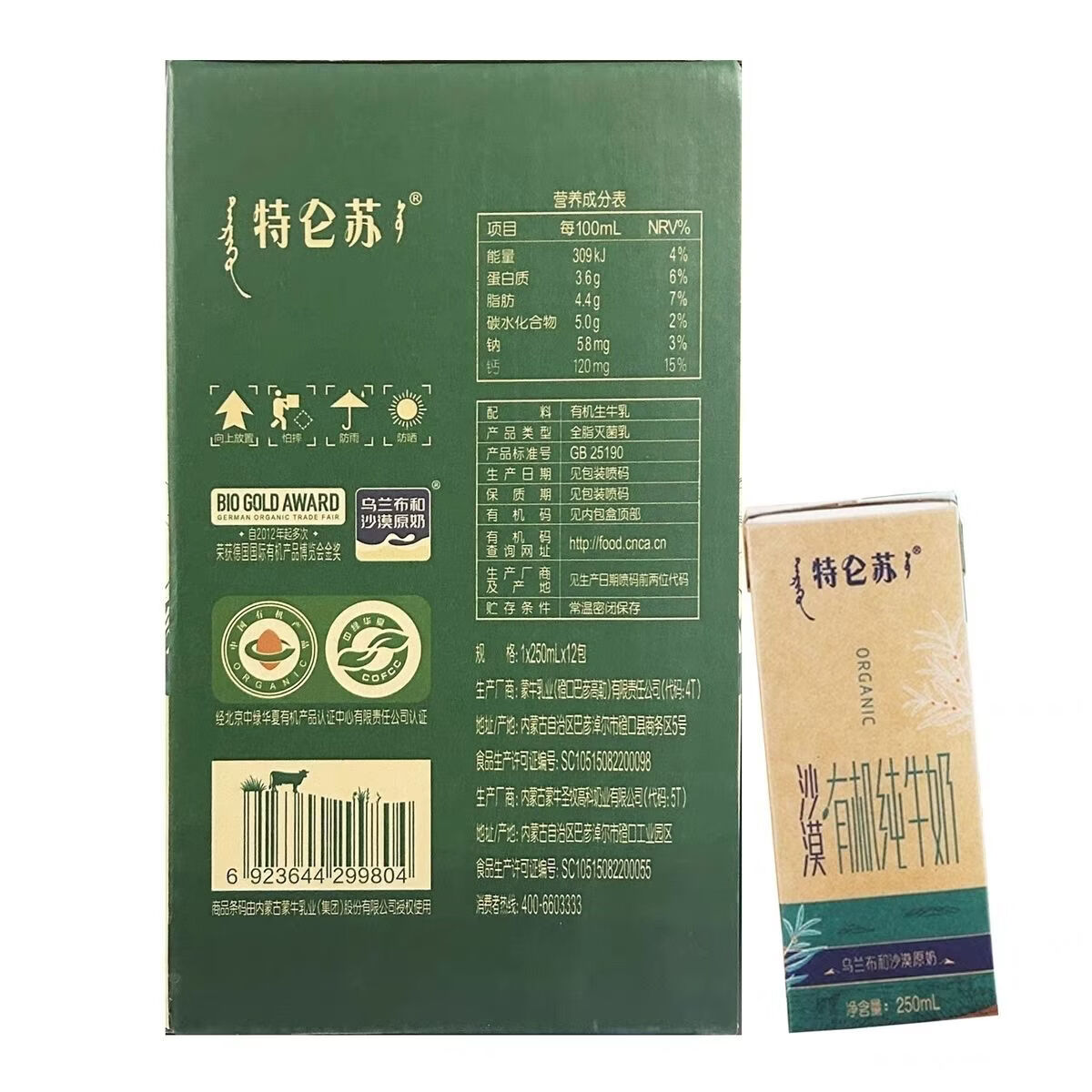 蒙牛特仑苏有机纯牛奶(苗条)装250ml*12(集中配送到单位) 26032016198045